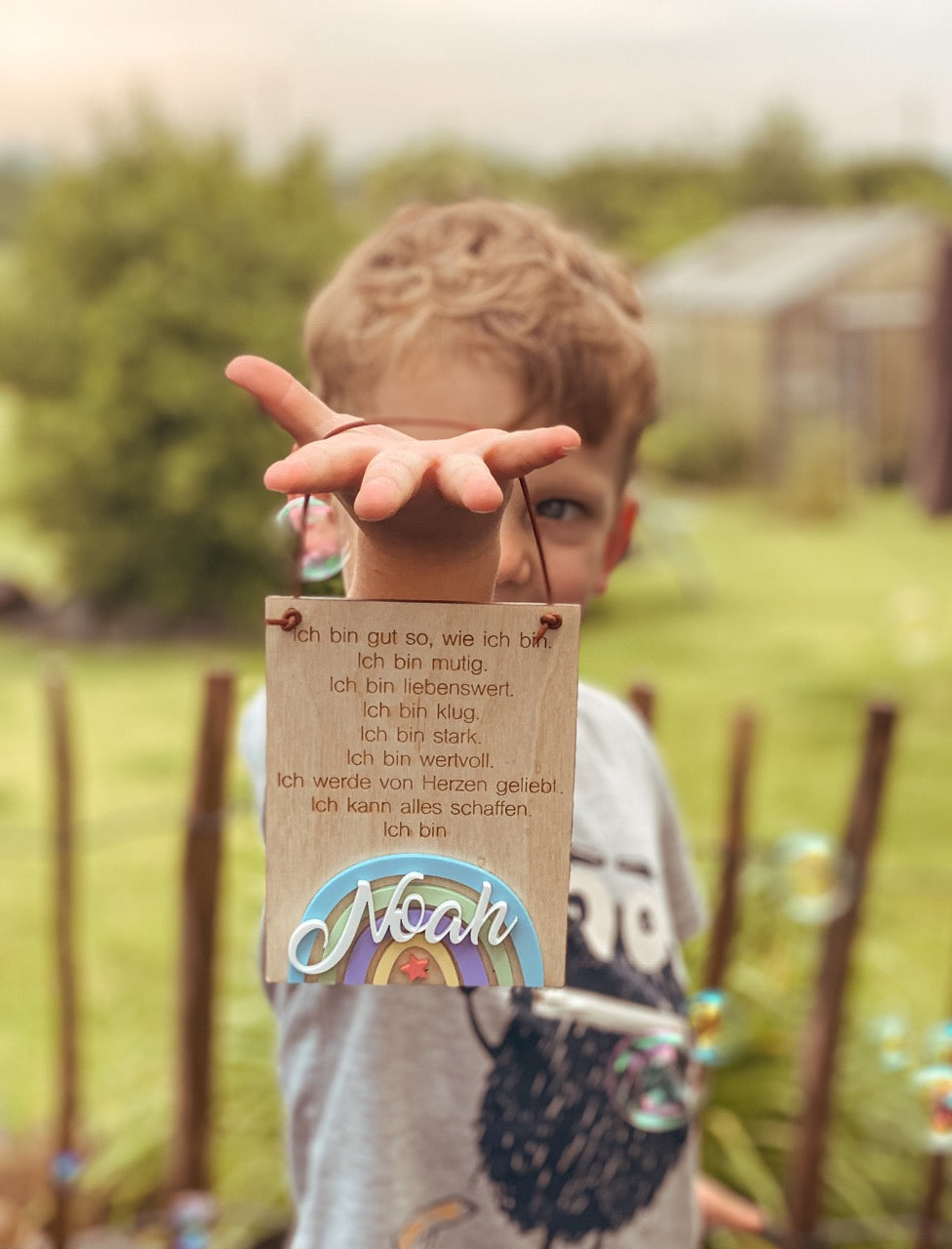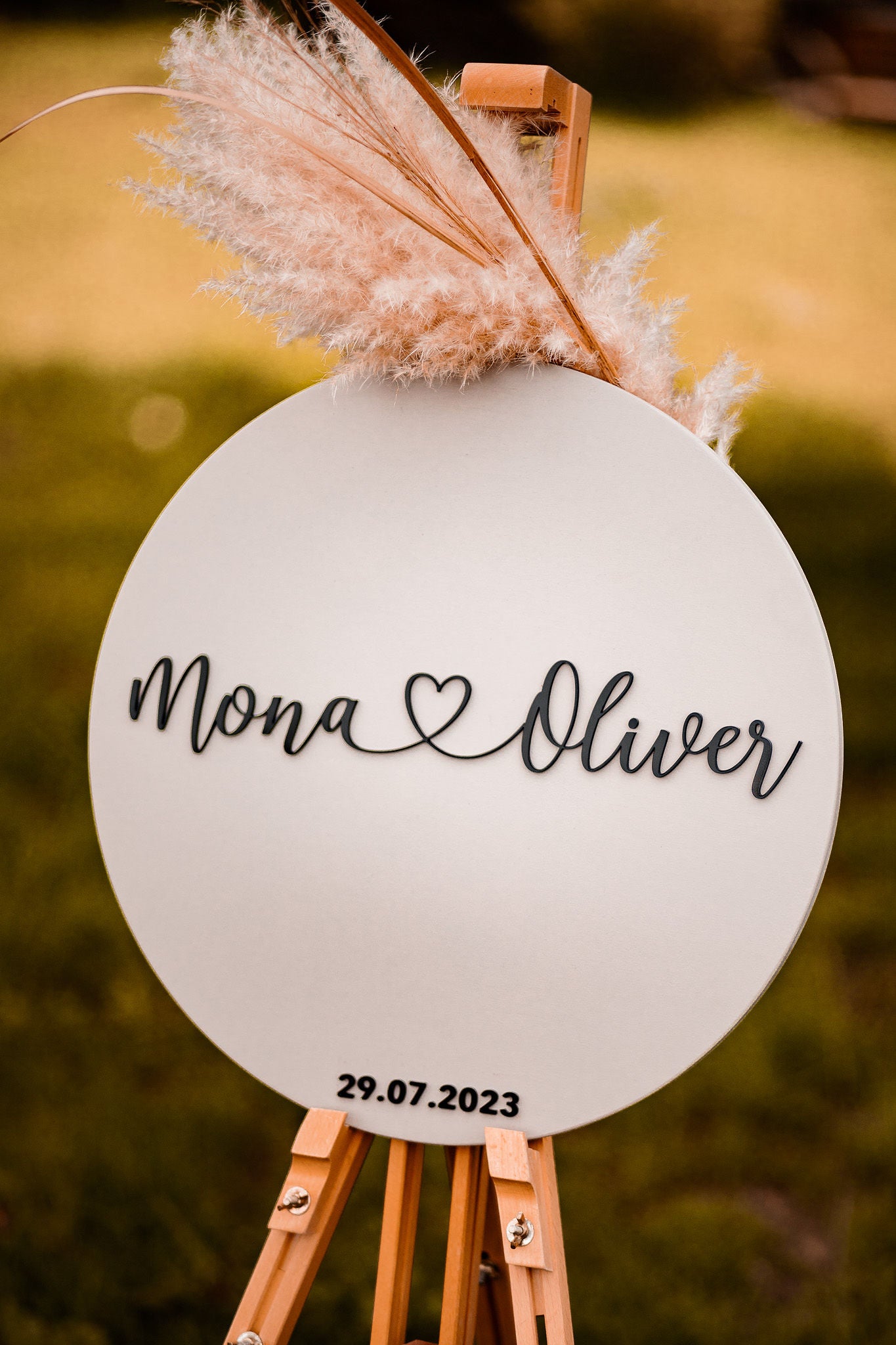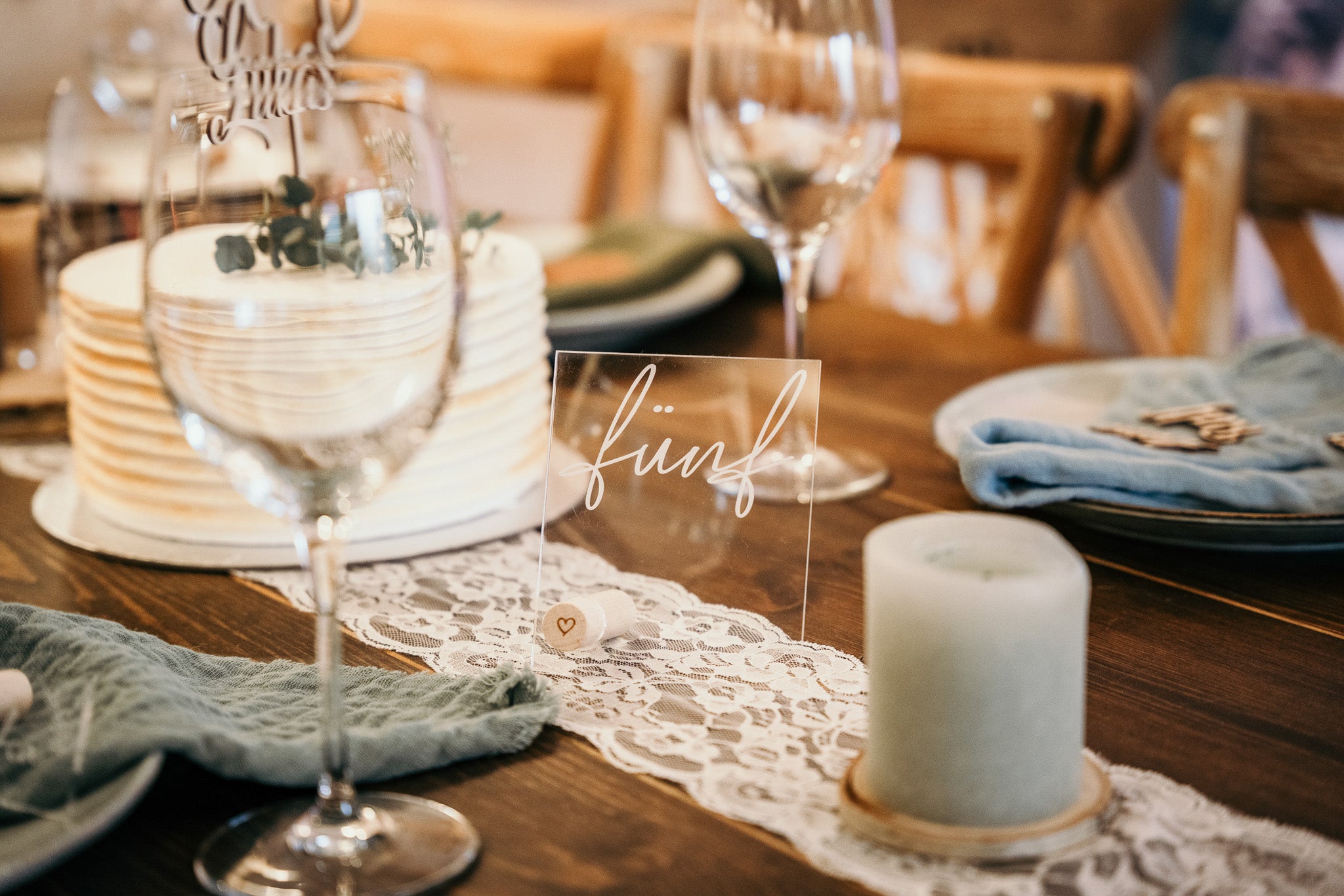 Du kannst wählen zwischen Schriftzügen aus mattem Holz oder edlem und glänzenden Acrylglas.